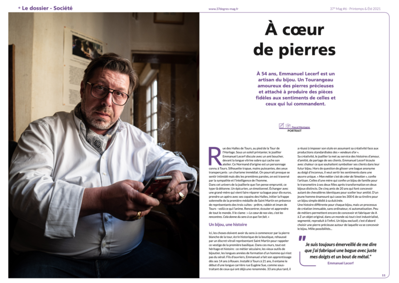 A 54 ans, Emmanuel Lecerf est un artisan du bijou. Un Tourangeau amoureux des pierres précieuses et attaché à produire des pièces fidèles aux sentiments de celles et ceux qui lui commandent.