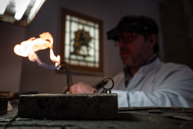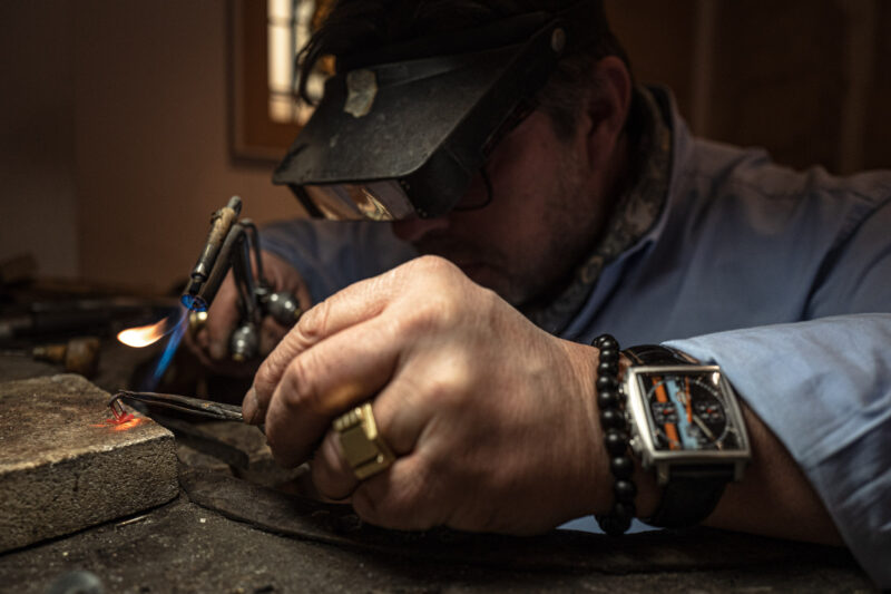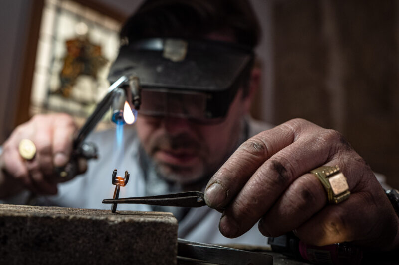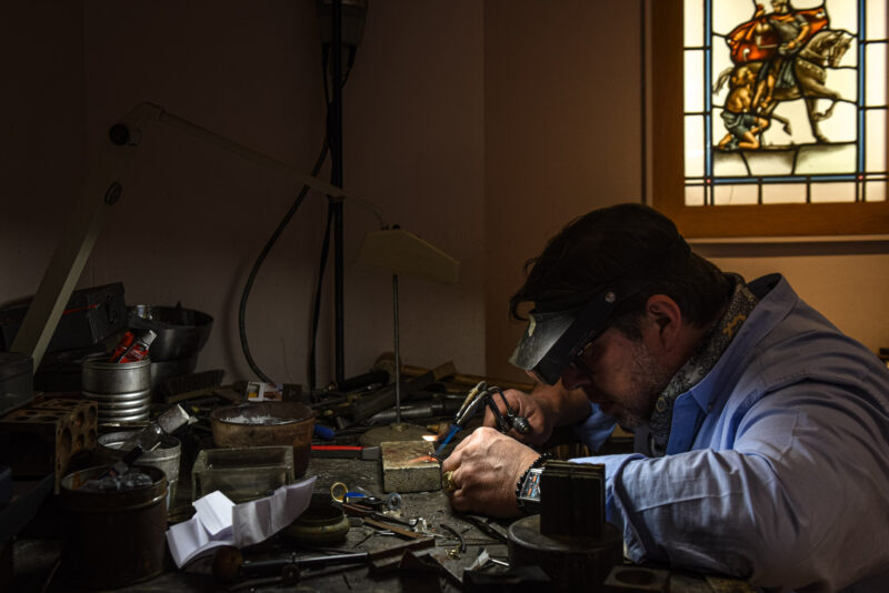 Dans cet univers de la joaillerie que l’on pense emprunté, ce type-là détonne. Un épicurien, un émotionnel. Échanger avec une grand-mère qui vient faire réparer sa bague pour dix euros, prendre un apéro avec ses copains des Halles, initier la frappe solennelle de la première médaille de Saint Martin en présence de représentants des trois cultes – prêtre, rabbin et imam de Tours – voilà ce qui l’anime. Rencontrer, écouter et apprendre de tout le monde. Il le clame : “Le cœur de nos vies, c’est les rencontres. Cela donne du sens à ce que l’on fait”.