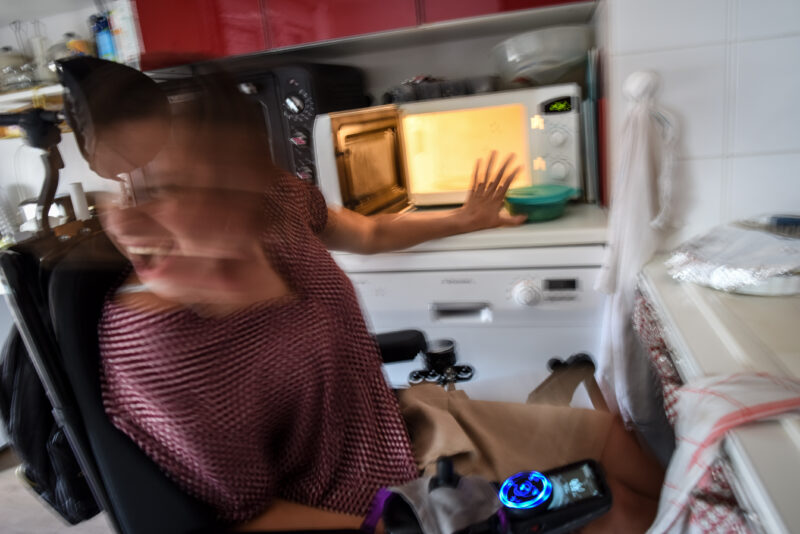 Dès la rencontre de Félicie et Pascal, un objectif commun est né : changer le regard sur les personnes en situation de handicap, montrer le quotidien et ses problématiques mais aussi valoriser l’image de la personne. Le travail photographique s’est donc concentré sur ces quatre thèmes : le mouvement en perpétuel déséquilibre, la question de la féminité, le regard d’autrui, et les prolongements nécessaires à l’autonomie.
