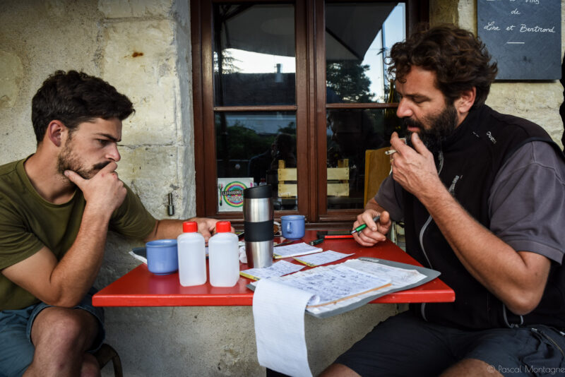 Quand il parle de lui et de son travail, Bertrand reconnait « un petit côté bourrin », en tout cas il fait « tout au feeling » comme quand il décide de proscrire les produits chimiques dès 2004… quitte à passer pour « un hurluberlu ». 15 ans après il confi rme : « c’était du bon sens. » Avec 6,5 hectares, son domaine est petit mais complété par une activité de négoce dans des vignes choisies avec soin, quitte à se déplacer pour vendanger : « il n’y a pas un jus qui arrive ici sans que je sache ce que c’est. » D’abord nécessaire pour pallier le manque de raisin à cause du gel de 2012, 2013, 2016 et 2017, cette production de vin de France est devenue régulière pour développer des cuvées de caractère, aux étiquettes originales, et toujours bio. Un alliage qui s’exporte jusqu’au Japon et aux Etats-Unis. Autre diversifi cation d’activité : aux beaux jours, la terrasse du domaine accueille une cave à manger où l’on sert charcuteries, poissons, fromages et légumes sélectionnés « chez les copains ».