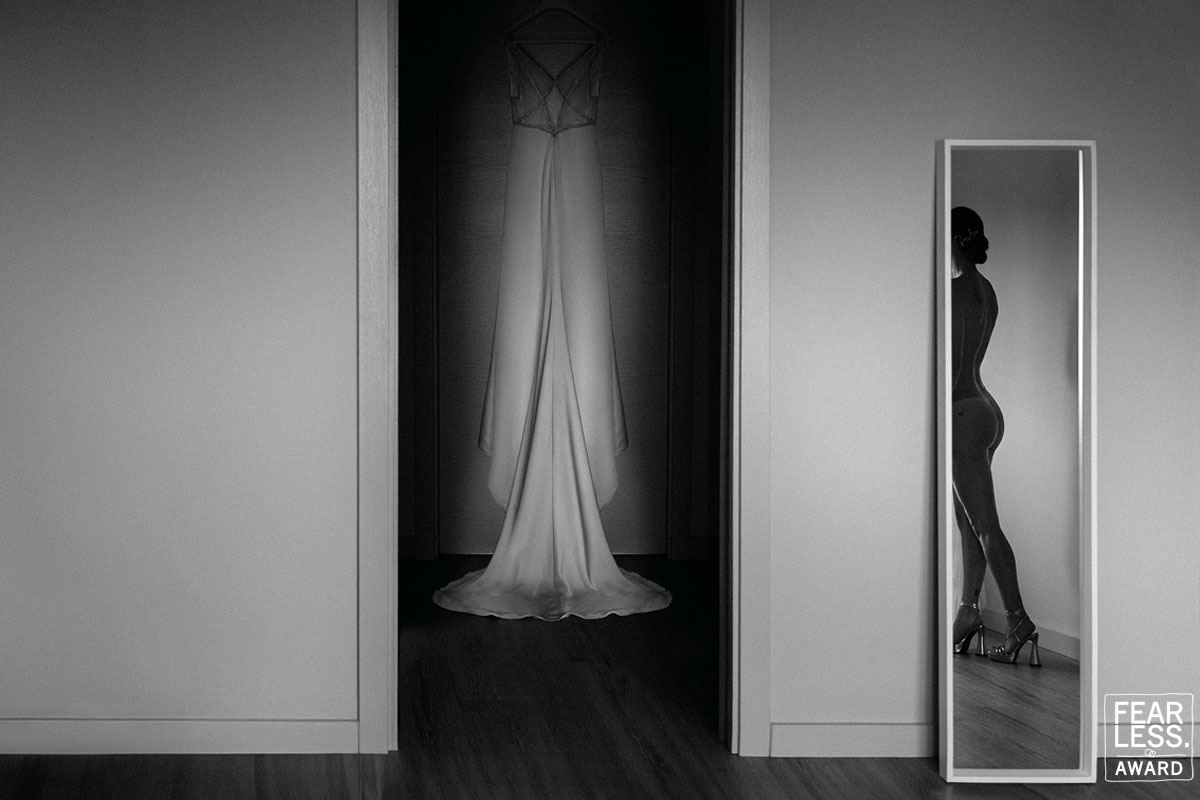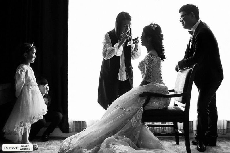 - la photo portrait, qui permet de sublimer certains moments par un subtil mélange de préparation, de confiance et de spontanéité. Ces photos sont préférentiellement réalisées lors de préparatifs et des séances groupe et couple.