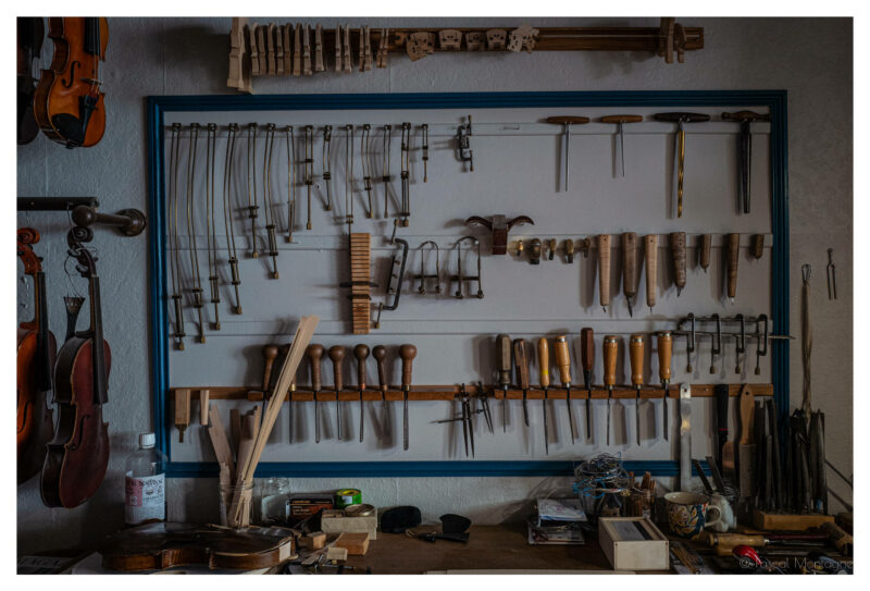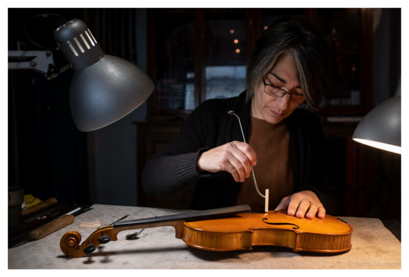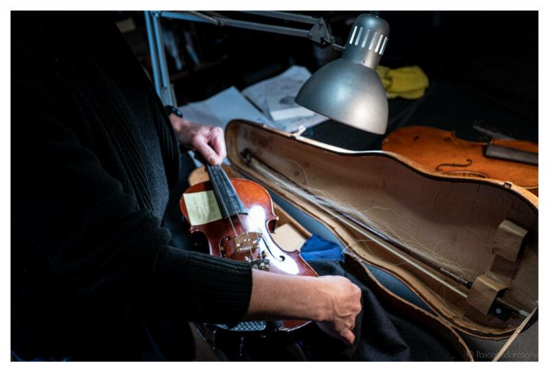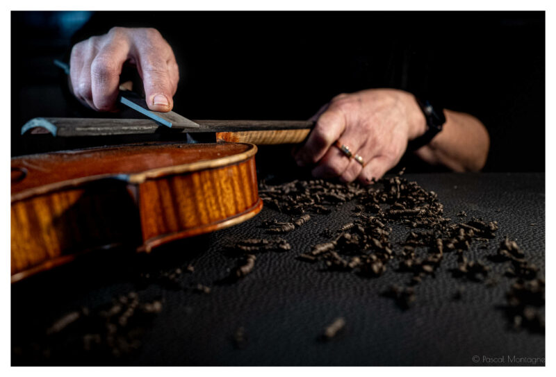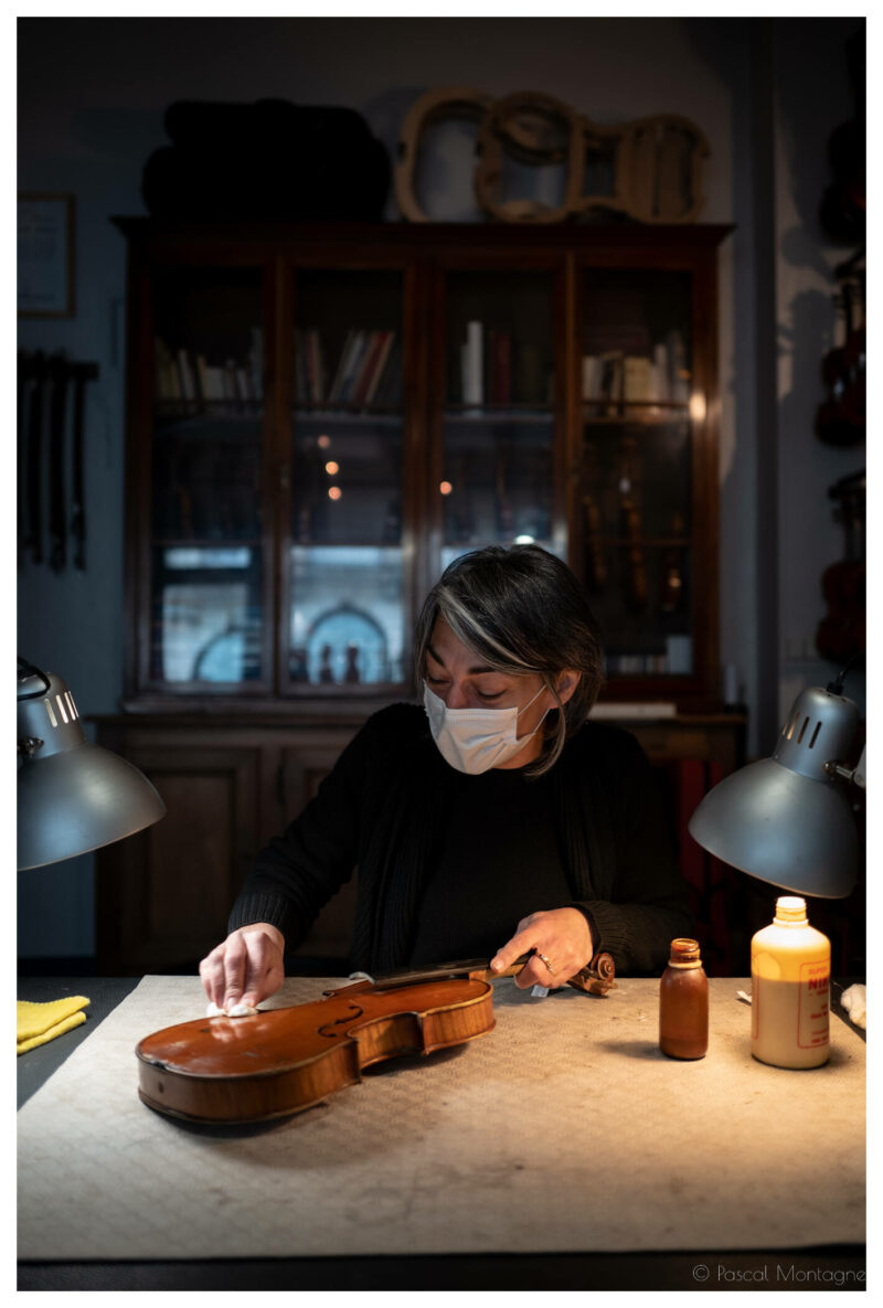 On le reconnaît pour son galbe féminin qui inspira la plus célèbre photographie de Man Ray, un objet de 350 grammes composé des plus précieuses essences de bois, supportant les 27 kilos de tension exercée par ses cordes : c’est le violon. Un instrument majeur dont certains exemplaires plusieurs fois centenaires sont encore joués aujourd’hui. C’est là tout l’univers de Cécile Grange, qui nous accueille dans son atelier Rue Bernard Palissy à Tours, alors qu’elle restaure un violon du XVIIIème siècle.