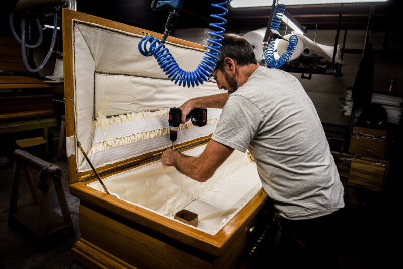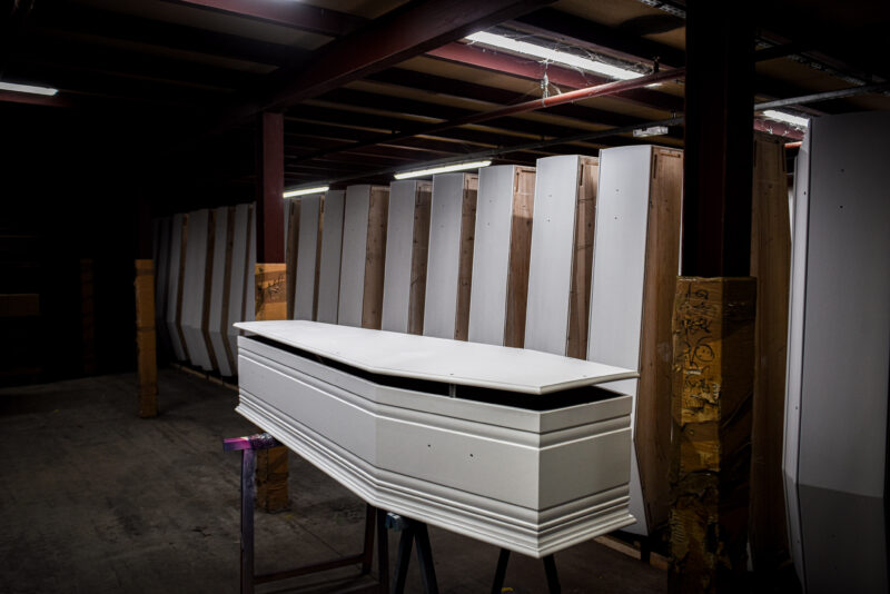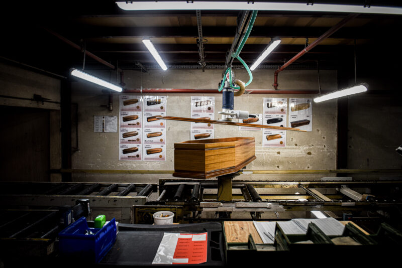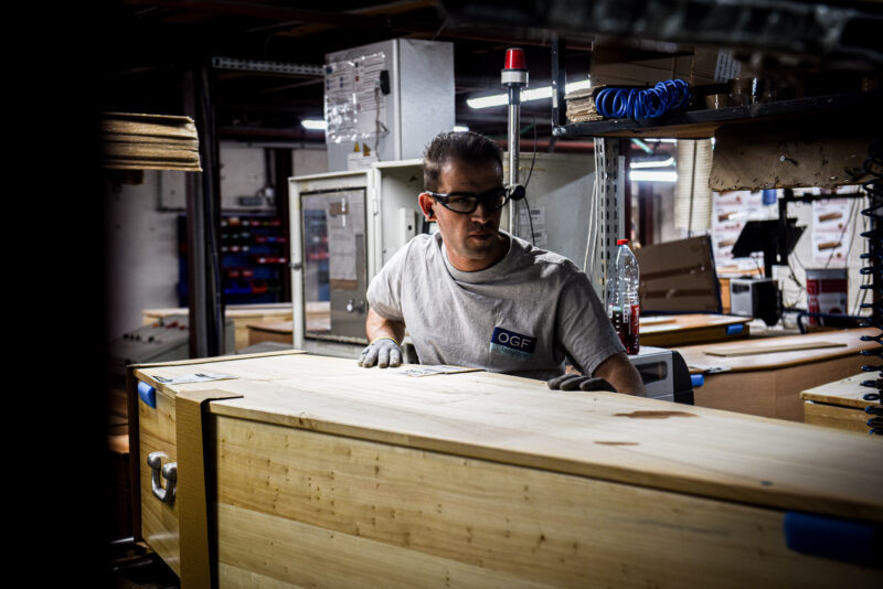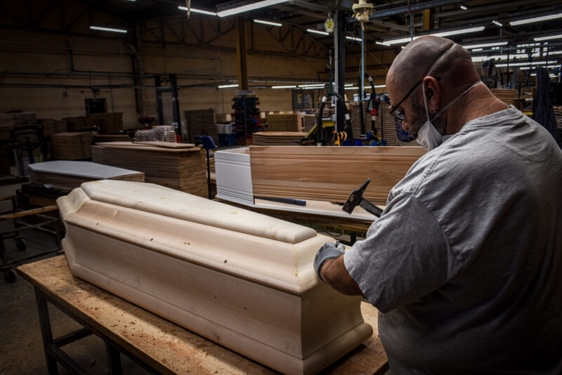 Ce business funèbre, c’est le métier d’Emmanuel Garret, directeur du site OGF de Jussey, dans le secteur depuis 26 ans. Mais ce n’est en rien un métier lugubre. Avec son accent franc-comtois aussi marqué que son sourire, il fait son métier en servant les morts, sans gravité ni légèreté. “Construire des cercueils, c’est un métier comme un autre” selon lui, la charge symbolique en plus. Dans l’usine presque aussi grande que le petit village de Jussey qui l’accueille, Emmanuel et le 140 collaborateurs travaillent à la réalisation des « boites » comme on les appellent ici.