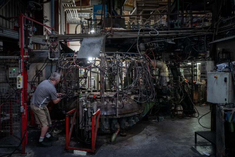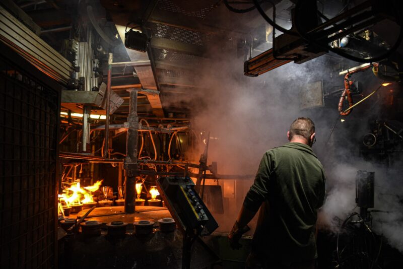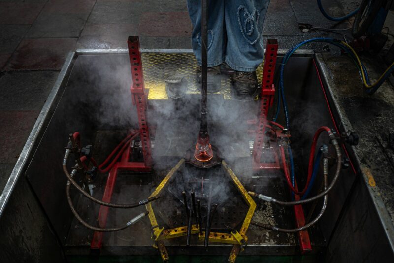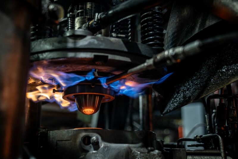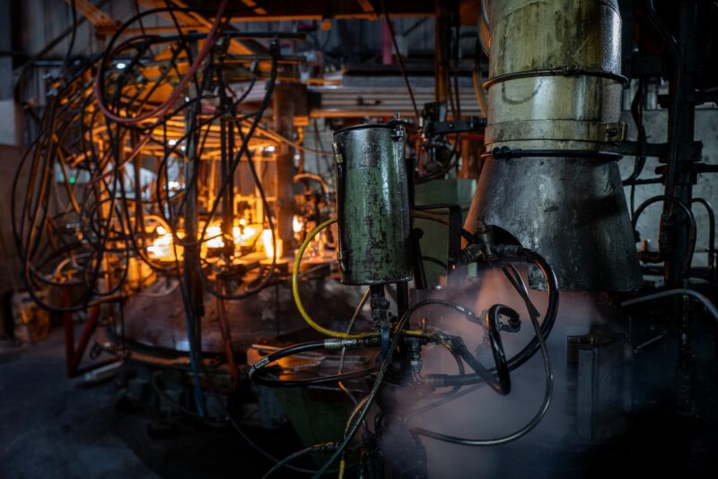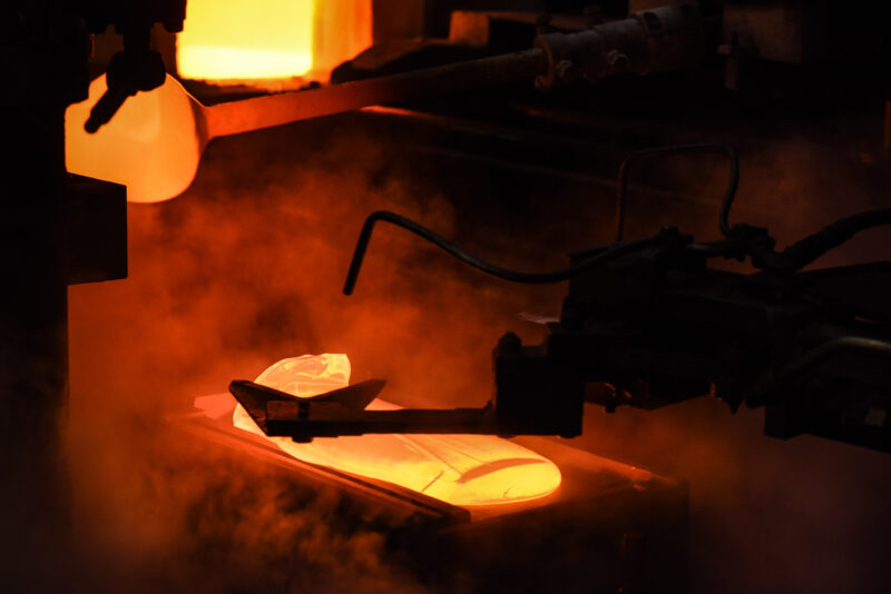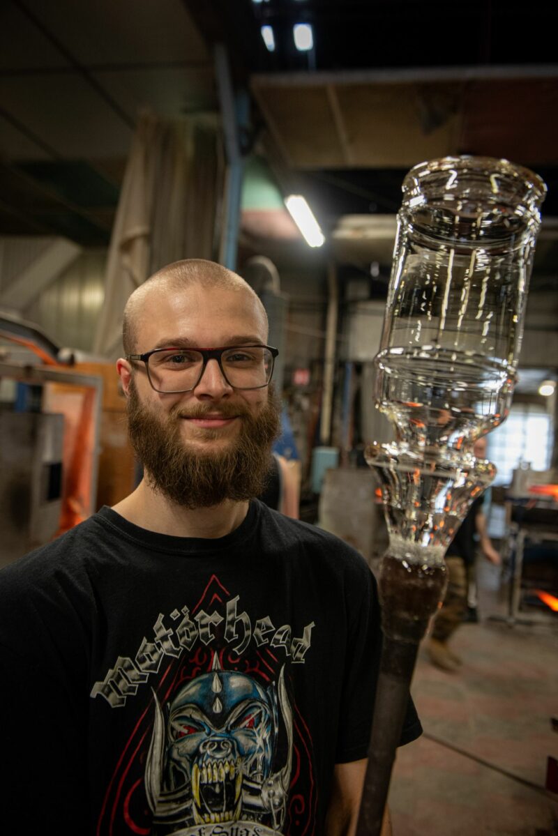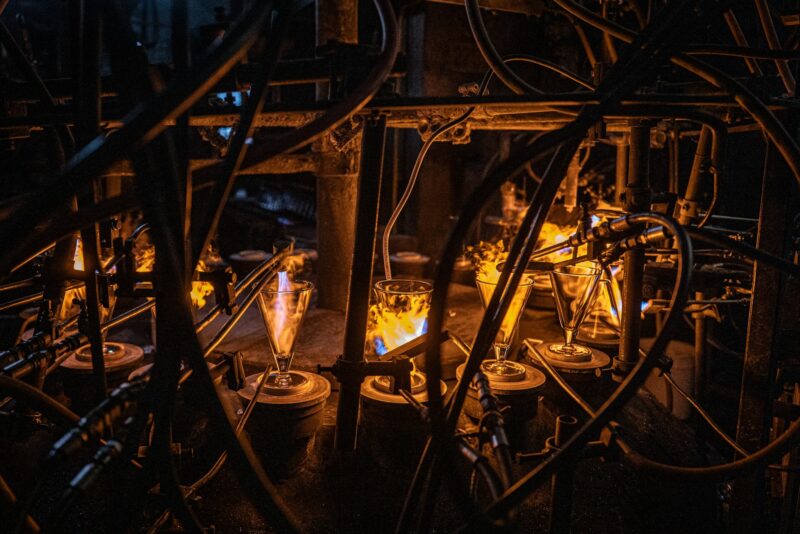 Dans ce petit matin lorrain brumeux, devant le creuset ardent de l’atelier, le maître verrier “cueille” à l’aide de sa canne de fer une petite masse de verre, tel un petit soleil incandescent. Le maître verrier s’affaire immédiatement à la mettre en forme en la “maillochant” dans une sorte de cuillère en bois préalablement mouillée. Le maître verrier entame alors une chorégraphie millimétrée et parfaitement rythmée, le cristal en fusion devant rester suffisamment chaud pour être malléable et suffisamment dur pour garder sa forme. Soufflant une première fois pour créer une première bulle dans le verre, “l’amorce”, il ajoute progressivement un peu de matière, resserre la forme à l’aide d’une pince, pour enfin glisser le tout avec précision dans un moule.