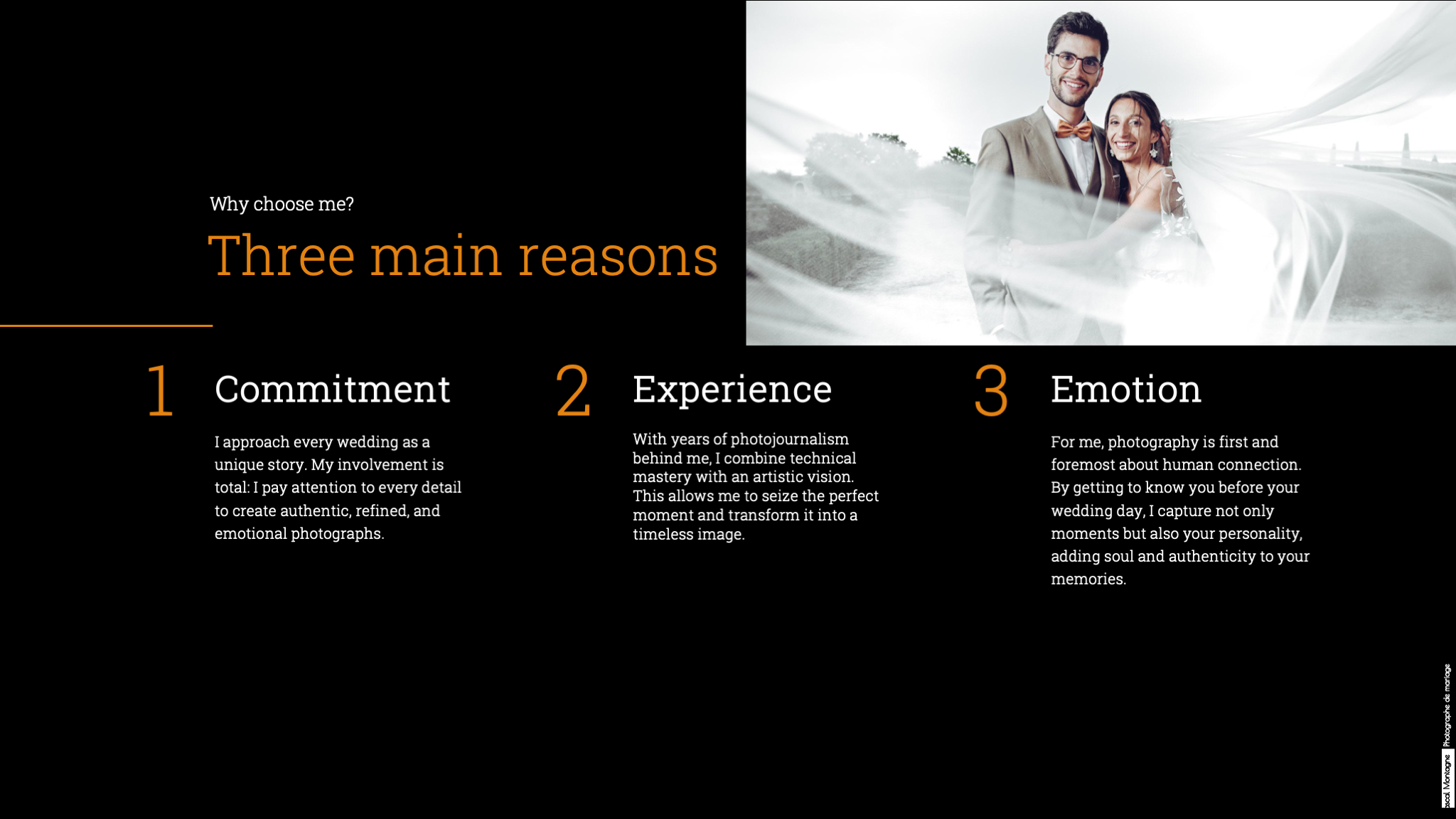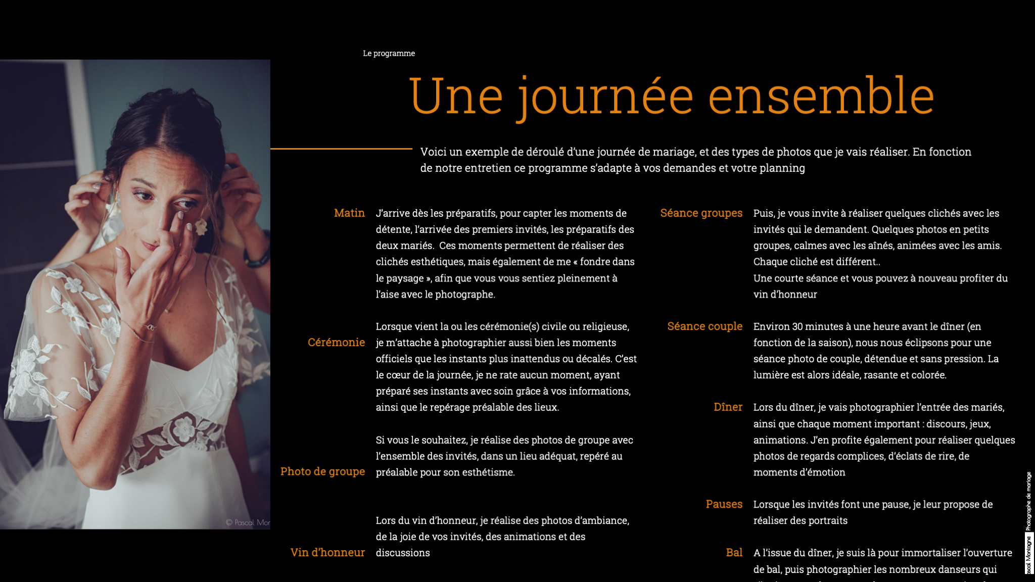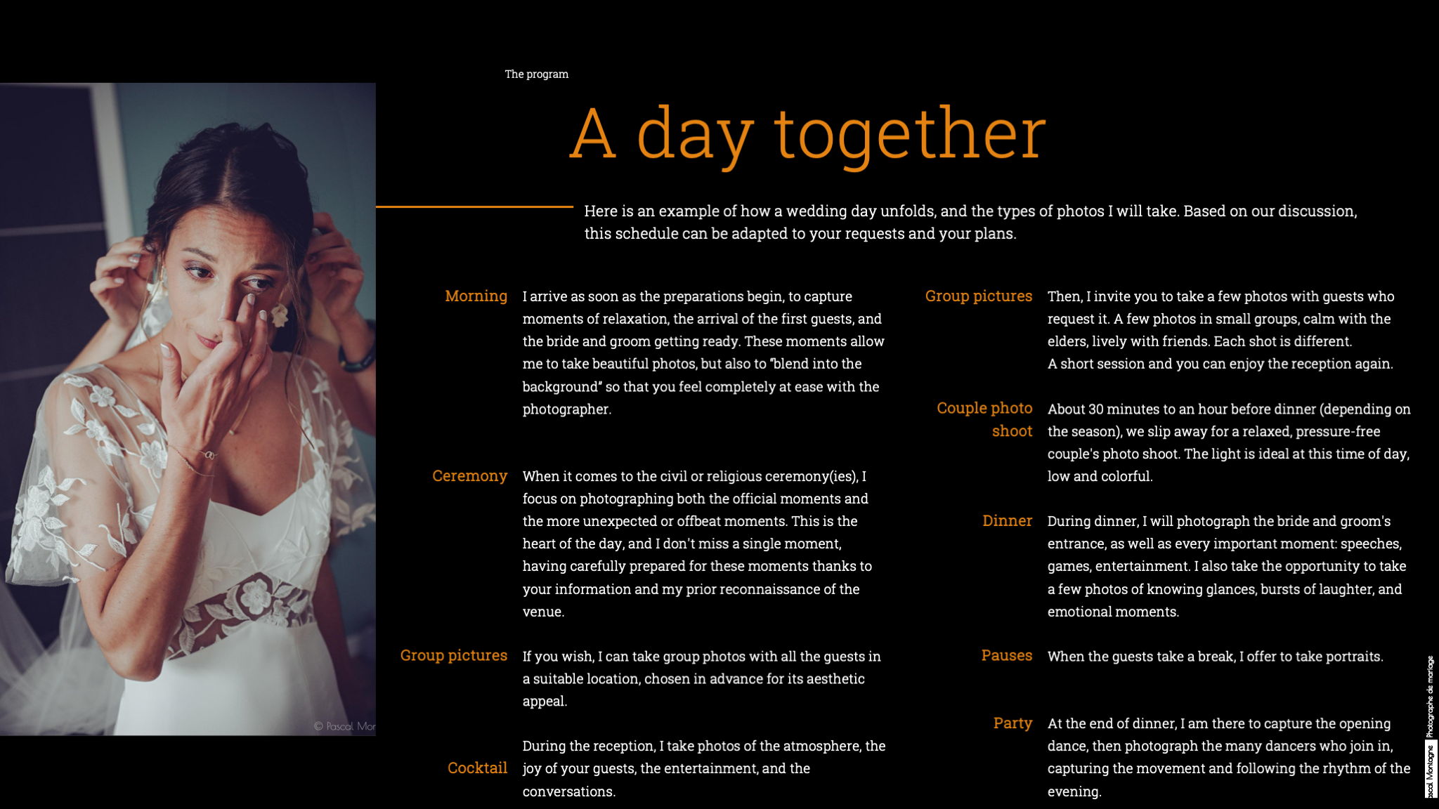 If you have 15 minutes to spare, I invite you to read my detailed presentation by clicking on the image below or download the PDF file. It explains my photographic approach, as well as each stage of the wedding.